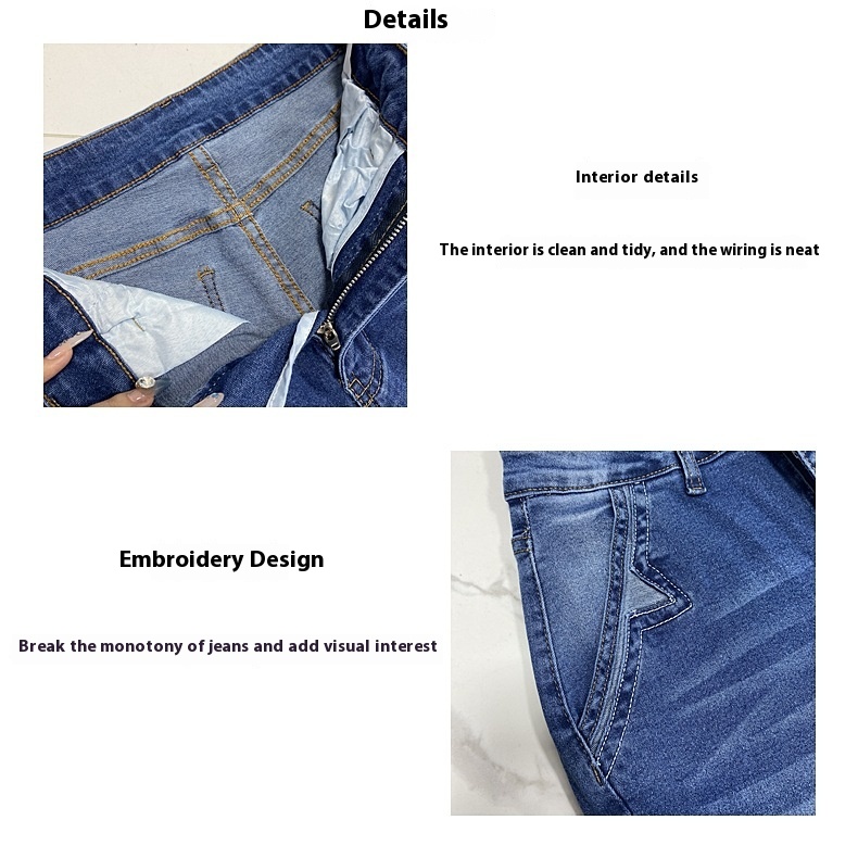 Embroidered Elastic Straight Pants Casual
