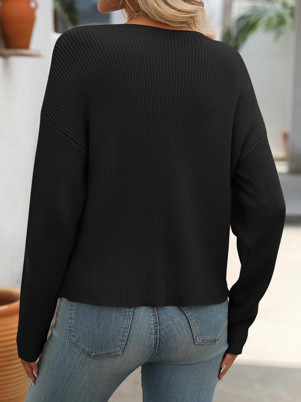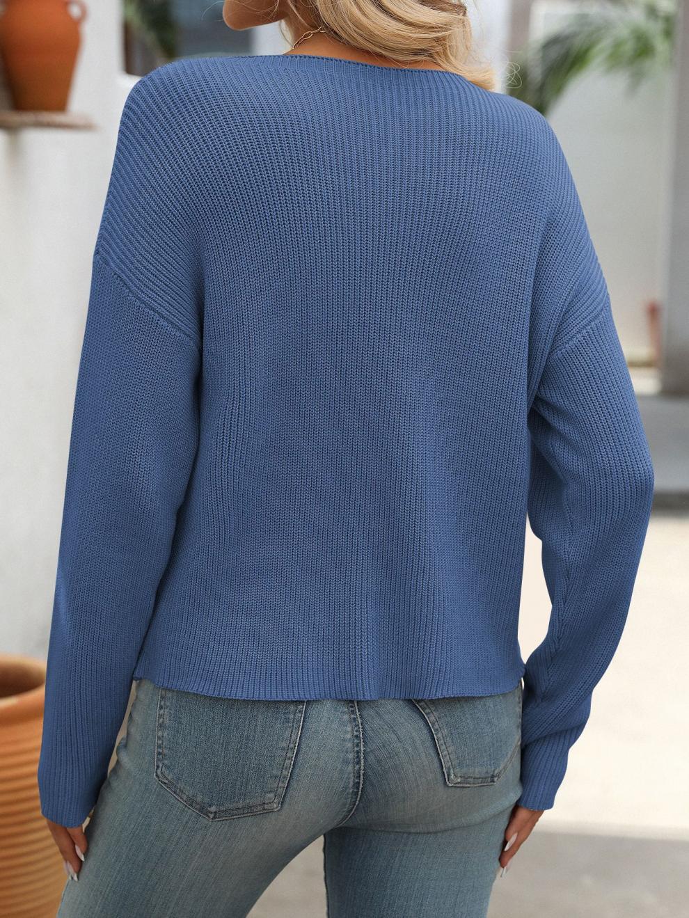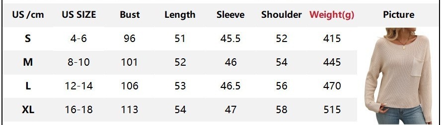 • Women's Round Neck Pocket Decorative Top Long Sleeve Sweater
