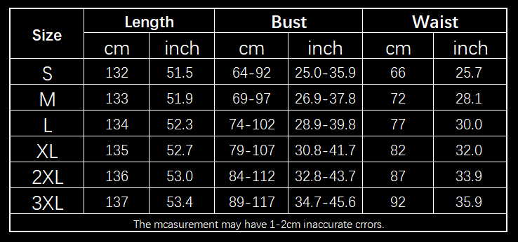2. Please check the size chart carefully before you buy the item, if you don't know how to choose size, please contact our customer service.