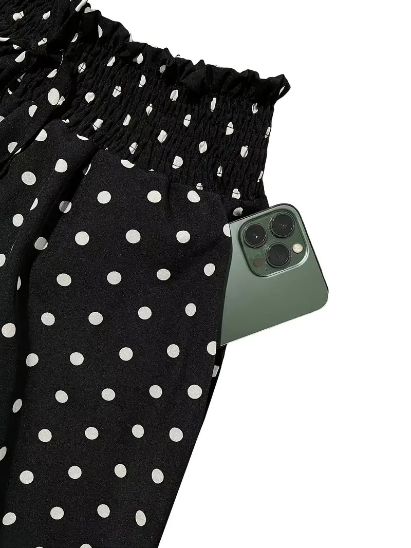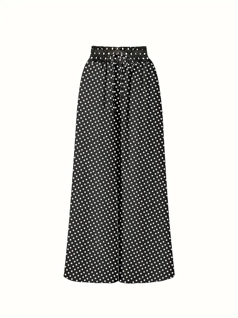 • Polka Dot Print Trousers Fashion Loose Elastic Waist Wide-leg Pants Women's Clothing